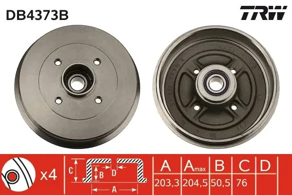 (203X50MM) RENAULT THALIA02- (+ABS) Bęben hamulcowy TRW DB4373B DB4373B/LUC TRW