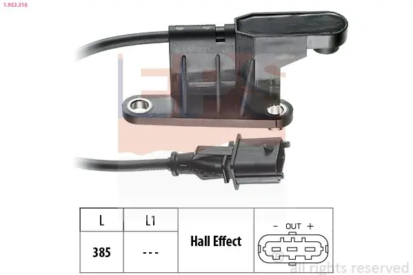 ASTRA G 1,4 16V 1,6 16V – 10.2005 VECTRA B – 07.2002 VECTRA C 1.6 16V GTS 06.2004 – ZAFIRA Czujnik, pozycja wałka rozrządu EPS 1.953.316 1.953.316/EPS EPS