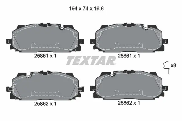 Zestaw klocków hamulcowych, hamulce tarczowe TEXTAR 2586101 2586101/TEX TEXTAR