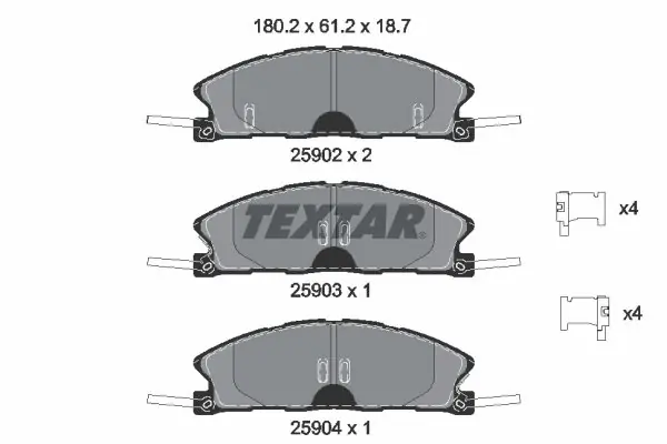Zestaw klocków hamulcowych, hamulce tarczowe TEXTAR 2590201 2590201/TEX TEXTAR